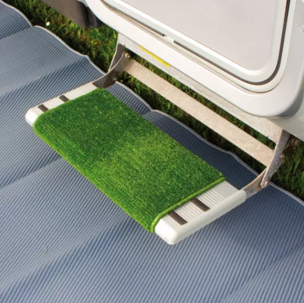 Help keep your vehicle clean with the Fiamma Clean Step Plastic Step Mat. Suitable for electric or manual steps, the Clean Step fits snugly around your step, giving you an easy way to scrape sand, dirt and mud off of your shoes before you enter. Using stainless steel springs, the Clean Step fits around steps from 38 x 40cm to 45 x 40cm, giving you a secure doormat that's easy to remove and clean. Made of durable plastic and available in green.